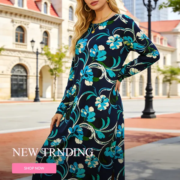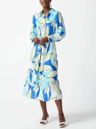 Blue and White Leaf Print Shirt Dress